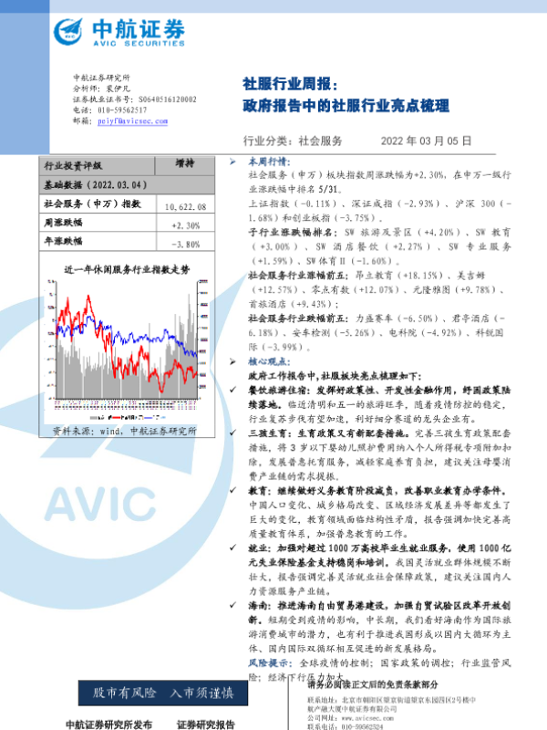 【中航证券】【20220305】社服行业周报:政府报告中的社服行业亮点梳理-9页 行业研究