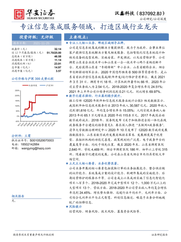 【华安证券】【20211125】专注信息集成服务领域,打造区域行业龙头-34页 行业研究