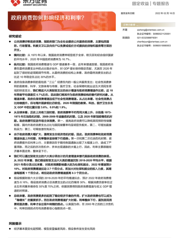 【东方证券】【20220216】固定收益专题报告:政府消费如何影响经济和利率?-18页 行业研究