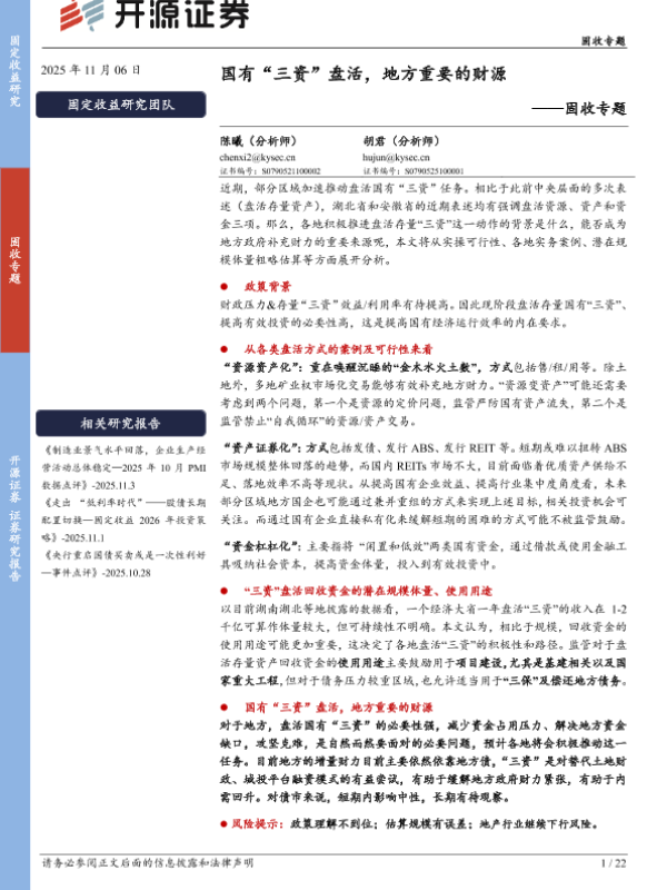 【开源证券】【202511】国有“三资”盘活,地方重要的财源-22页 证券期货研究报告