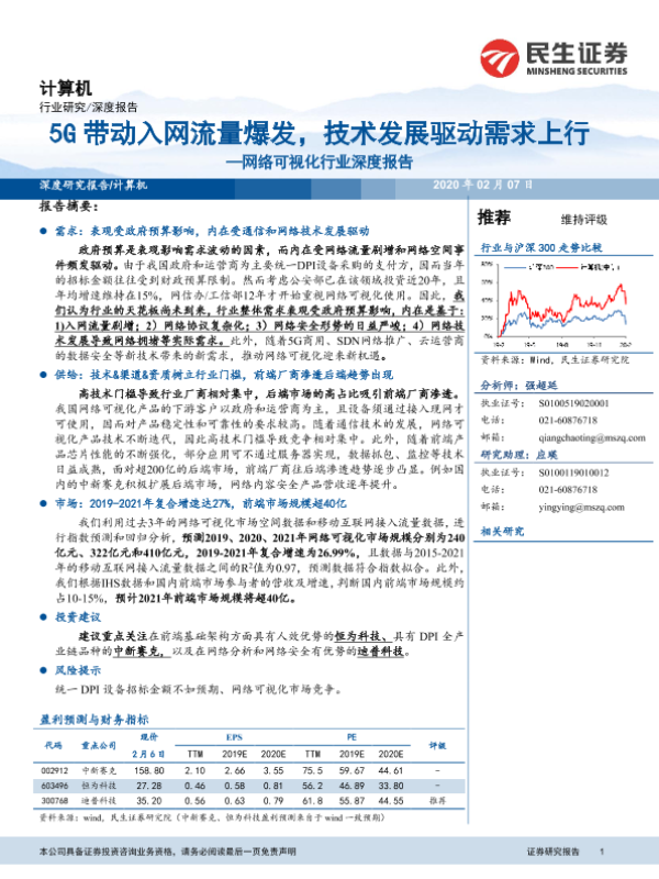 【民生证券】【20200207】5G带动入网流量爆发,技术发展驱动需求上行—网络可视化行业深度报告-29页 行业研究