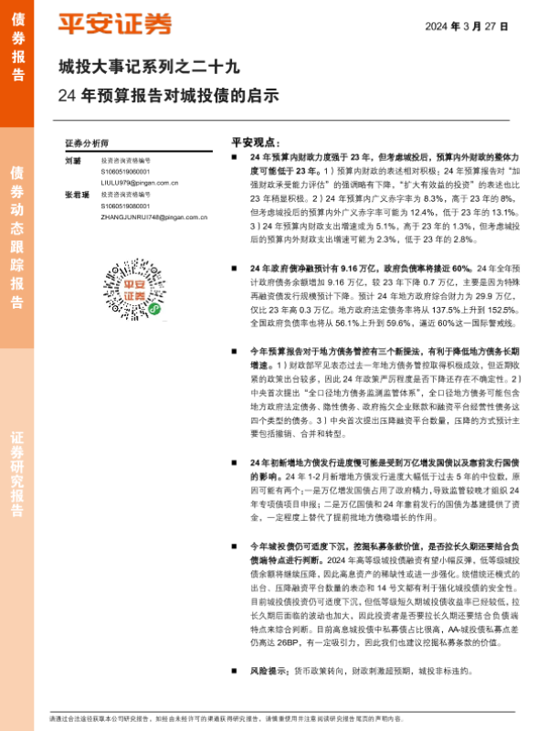 【平安证券】【20240327】城投大事记系列之二十九:24年预算报告对城投债的启示-8页 行业研究
