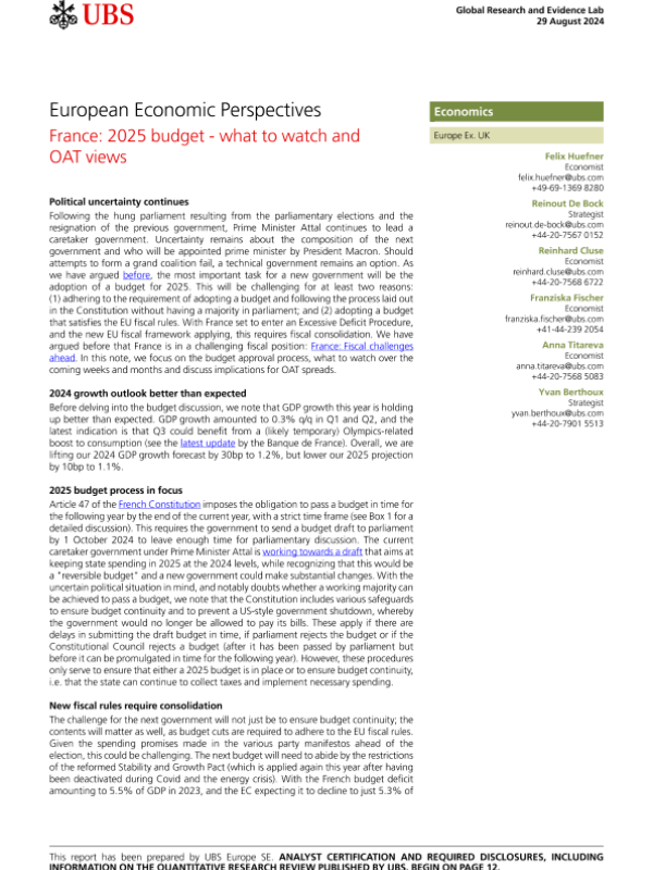 【UBS Europe SE】【20240829】France 2025 budget - what to watch and OAT views-15页 行业研究