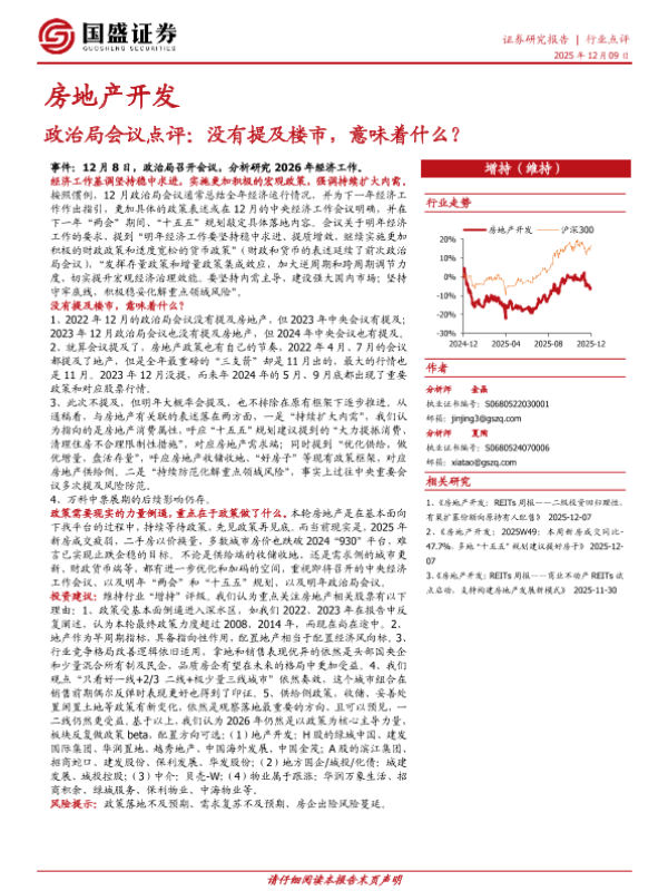 【国盛证券】【202512】政治局会议点评:没有提及楼市,意味着什么?-3页 证券期货研究报告