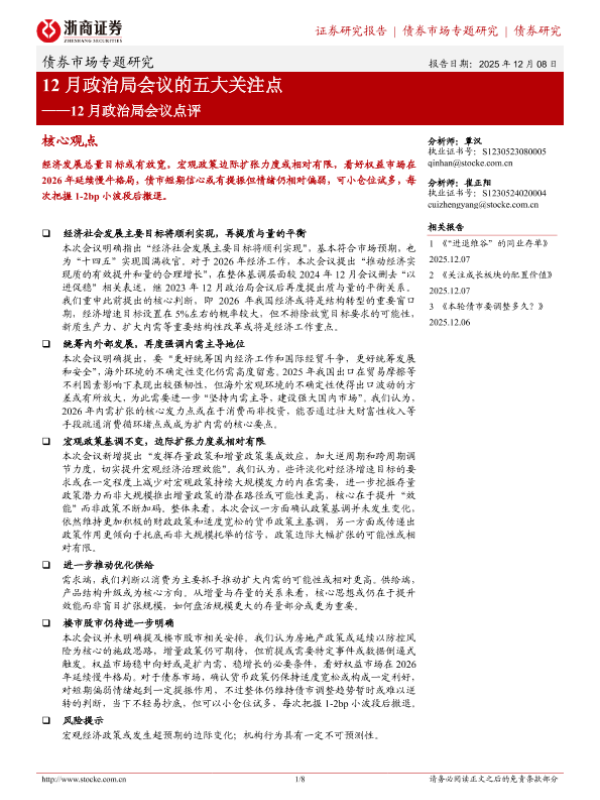 【浙商证券】【202512】12月政治局会议的五大关注点——12月政治局会议点评-8页 证券期货研究报告