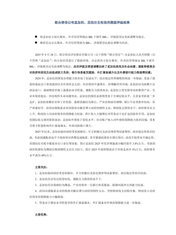 【联合资信】【202509】联合资信公布孟加拉、尼泊尔主权信用跟踪评级结果-3页 宏观策略