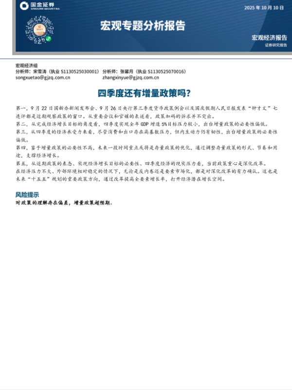 【国金证券】【202410】四季度还有增量政策吗-6页 证券期货研究报告