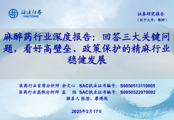 【海通证券】【20250217】麻醉药行业深度报告:回答三大关键问题,看好高壁垒、政策保护的精麻行业稳健发展-37页 行业研究