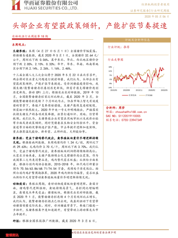 【华西证券】【20200506】20200506-华西证券-农林牧渔行业周报第18期:头部企业有望获政策倾斜,产能扩张节奏提速-16页 行业研究