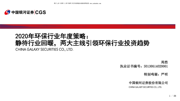 【银河证券】【20200106】2020年环保行业年度策略:静待行业回暖,两大主线引领环保行业投资趋势-25页 证券期货研究报告