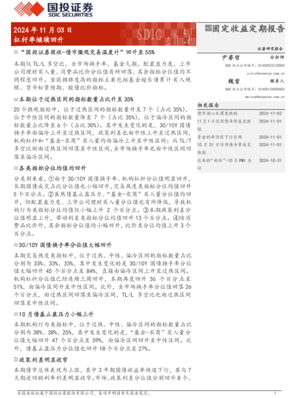 【国投证券】【20241103】固定收益定期报告:杠杆率继续回升-10页 行业研究
