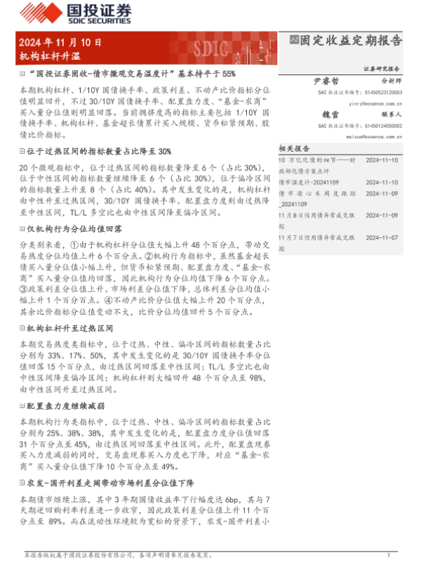 【国投证券】【20241110】固定收益定期报告:机构杠杆升温-10页 行业研究