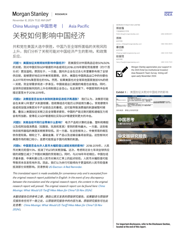 【Morgan Stanley】【20241106】Morgan Stanley Fixed-China Musings 中国思考 关税如何影响中国经济-6页 宏观策略