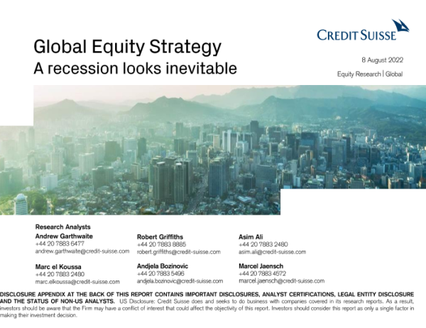 【Credit Suisse】【20220808】Global Equity Strategy A recession looks inevitable-174页 行业研究