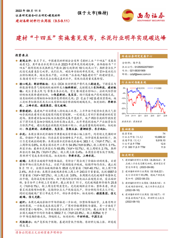 【西南证券】【20220911】建材&新材料行业周报:建材“十四五”实施意见发布,水泥行业明年实现碳达峰-20页 行业研究