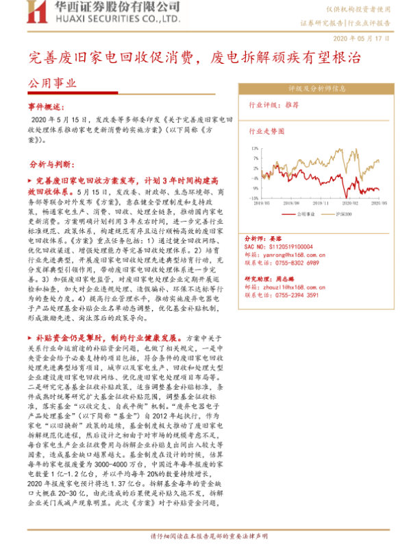 【华西证券】【20200517】完善废旧家电回收促消费,废电拆解顽疾有望根治-5页 行业研究