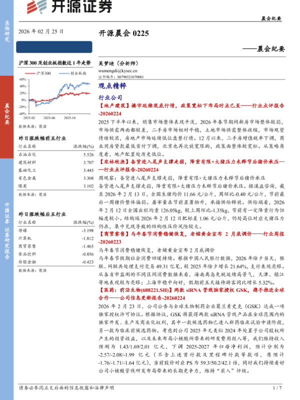 【开源证券】【202602】开源晨会-7页 会议纪要