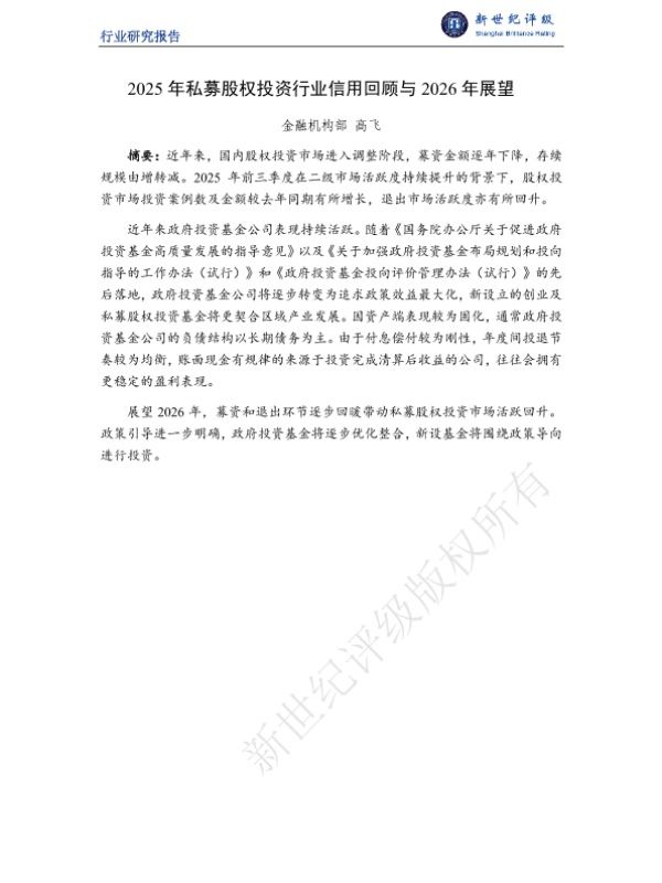 【金融机构部高飞】【2025】2025年私募股权投资行业信用回顾与 2026年展望-10页 行业研究
