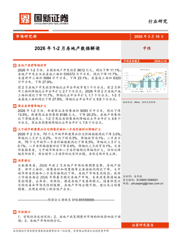 【国新证券】【202603】2026年1-2月房地产数据解读-2页 证券期货研究报告