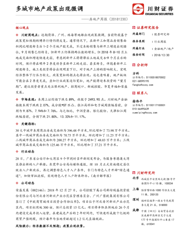 【川财证券】【20181230】多城市地产政策出现微调-10页 行业研究