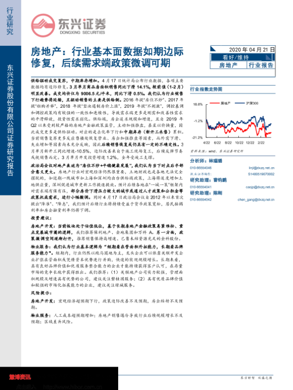 【东兴证券】【20200421】房地产:行业基本面数据如期边际修复,后续需求端政策微调可期-11页 行业研究