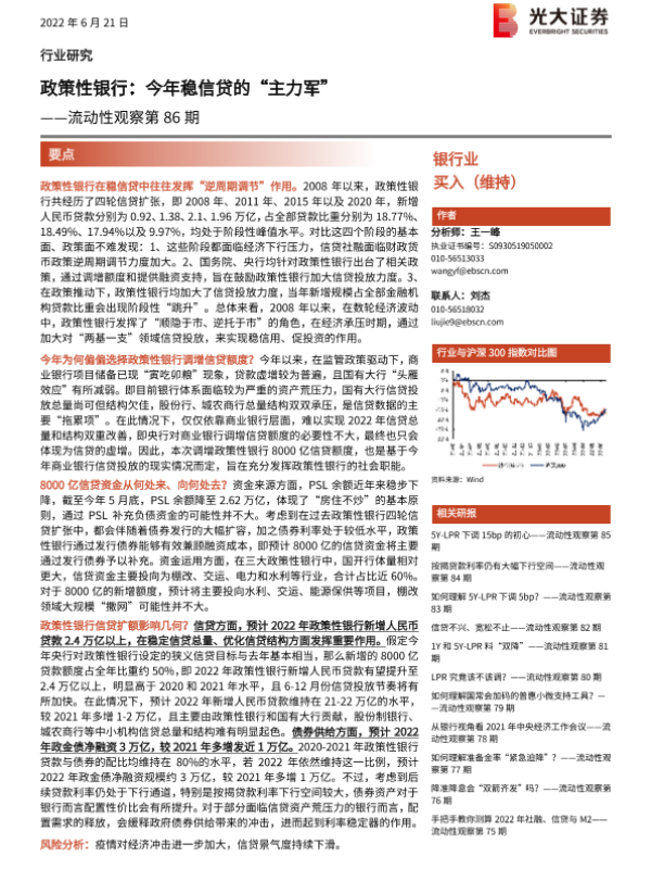 【光大证券】【20220621】流动性观察第86期:政策性银行:今年稳信贷的“主力军”-7页 行业研究
