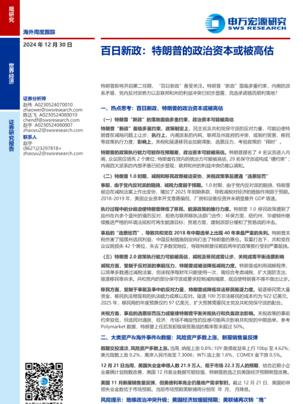 【申万宏源】【20241230】百日新政:特朗普的政治资本或被高估-23页 行业研究