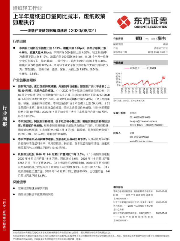 【东方证券】【20200802】20200802-东方证券-造纸产业链数据每周速递:上半年废纸进口量同比减半,废纸政策如期执行-15页 行业研究
