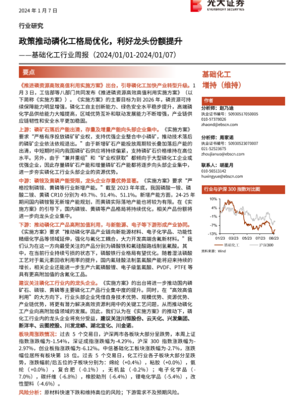 【光大证券】【20240107】基础化工行业周报:政策推动磷化工格局优化,利好龙头份额提升-26页 行业研究