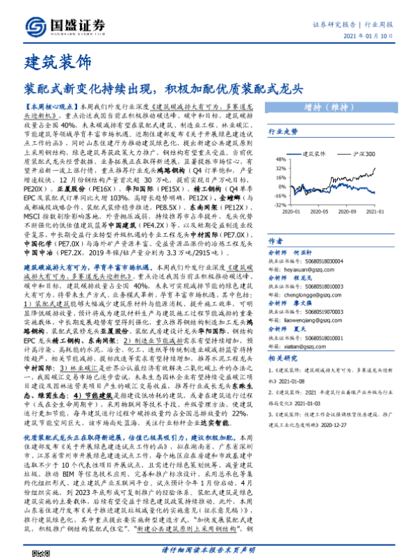 【国盛证券】【20210110】建筑装饰行业周报:装配式新变化持续出现,积极加配优质装配式龙头-17页 行业研究