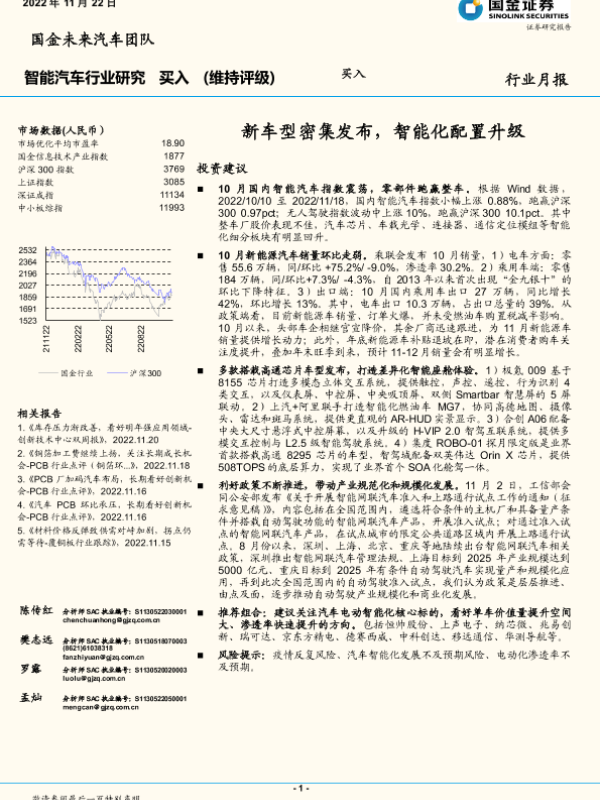 【国金证券】【20221122】智能汽车行业研究:新车型密集发布,智能化配置升级-24页 行业研究