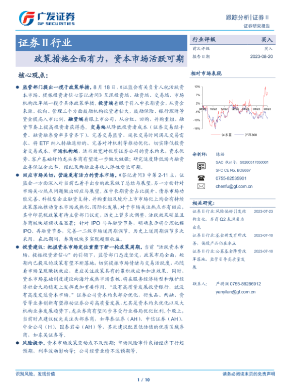 【广发证券】【20230820】证券Ⅱ行业:政策措施全面有力,资本市场活跃可期-10页 行业研究