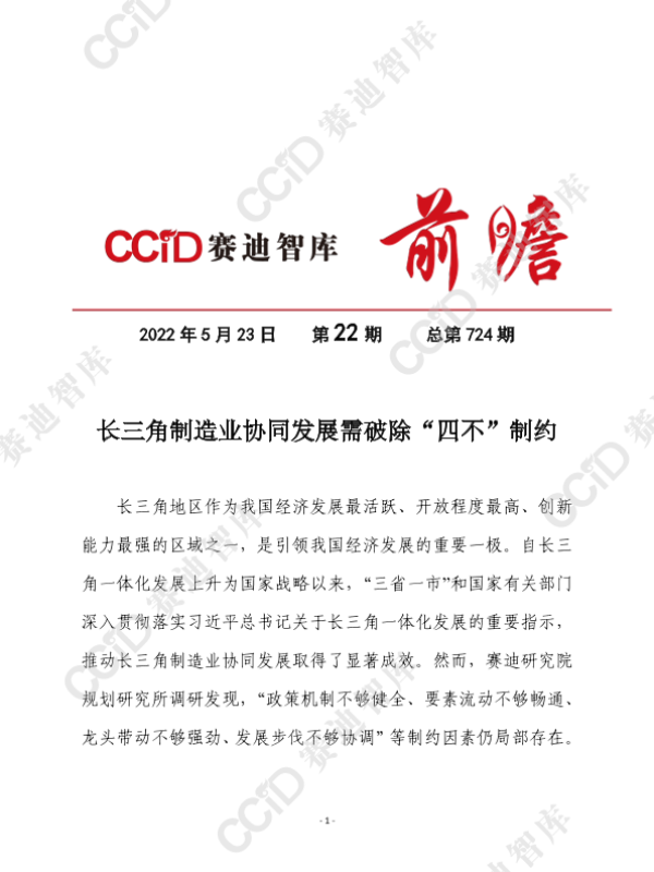 【赛迪研究院规划研究所】【20220523】长三角制造业协同发展取得显著成效“十四五”时期仍需破除“四不”制约-10页 行业研究