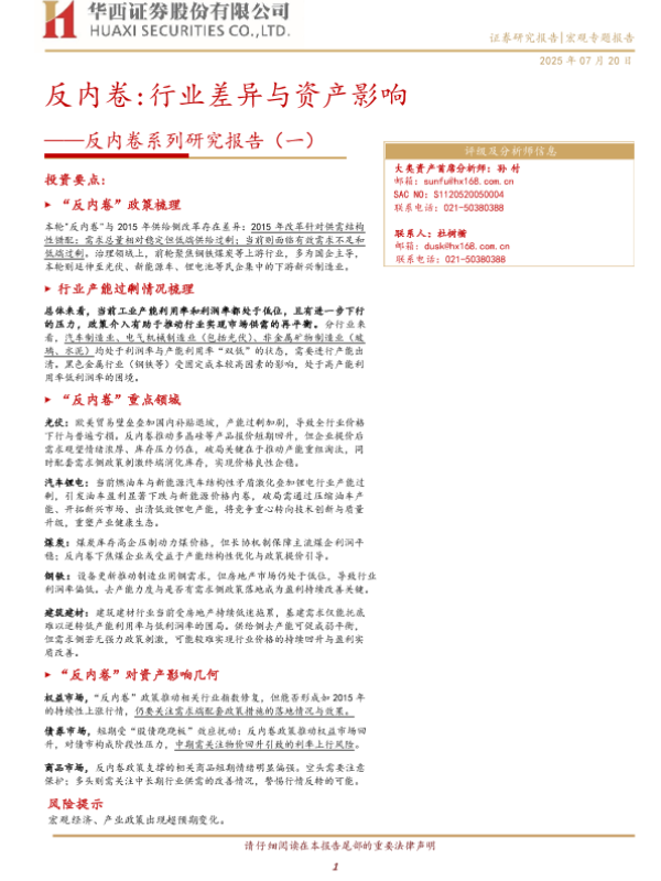 【华西证券】【202507】反内卷:行业差异与资产影响-26页 证券期货研究报告