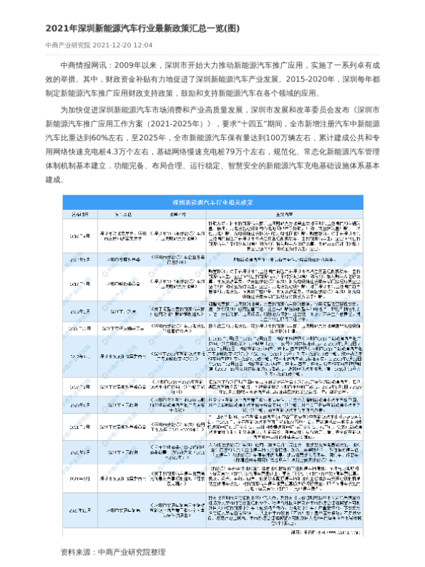 【中商产业研究院】【20211220】2021年深圳新能源汽车行业最新政策汇总一览(图)-2页 政策文件