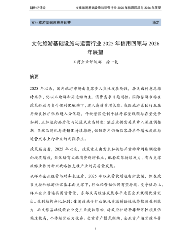 【新世纪评级】【2025】文化旅游基础设施与运营行业2025年信用回顾与2026年展望-48页 行业研究