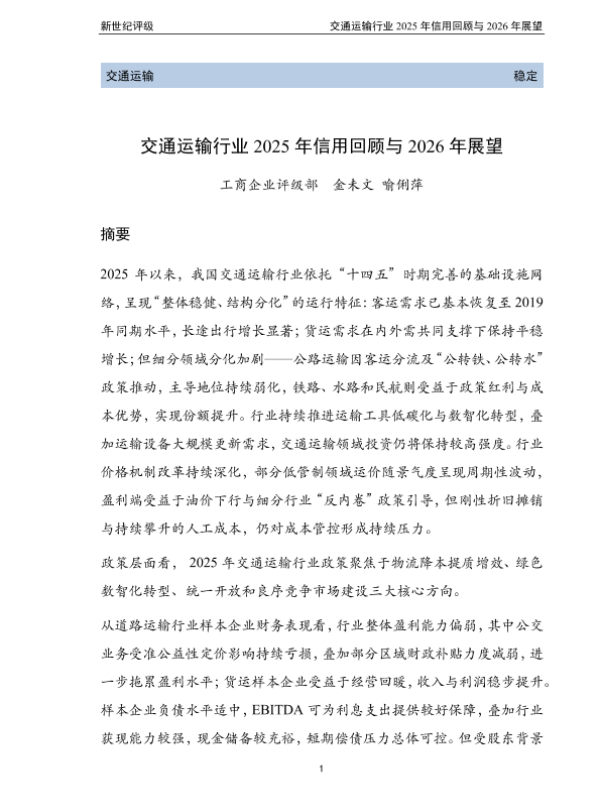 【新世纪评级】【2025】交通运输行业 2025年信用回顾与 2026年展望-63页 行业研究