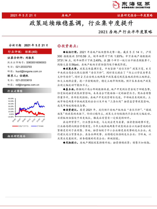 【东海证券】【20210521】2021房地产行业半年度策略:政策延续维稳基调,行业集中度提升-19页 行业研究