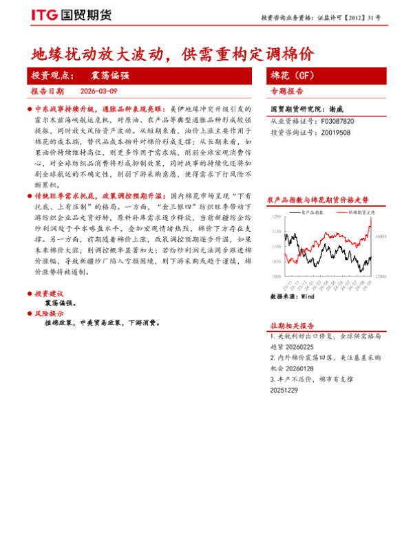 【国贸期货】【202603】地缘扰动放大波动,供需重构定调棉价-5页 证券期货研究报告
