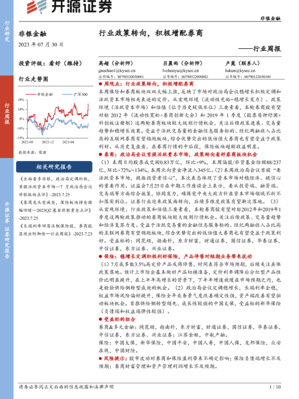 【开源证券】【20230730】非银金融行业周报:行业政策转向,积极增配券商-10页 行业研究