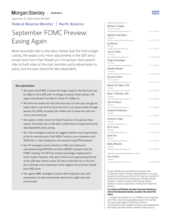 【Morgan Stanley&Co.LLC】【202409】Federal Reserve Monitor|North America September FOMC Preview Easing Again-23页 宏观策略
