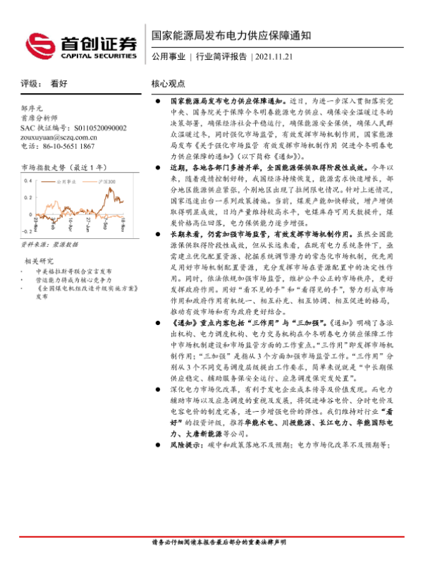 【首创证券】【20211121】国家能源局发布电力供应保障通知-6页 行业研究