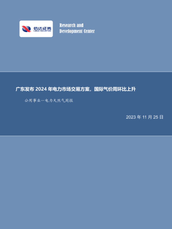 【信达证券】【20231125】广东发布2024年电力市场交易方案,国际气价周环比上升-20页 行业研究