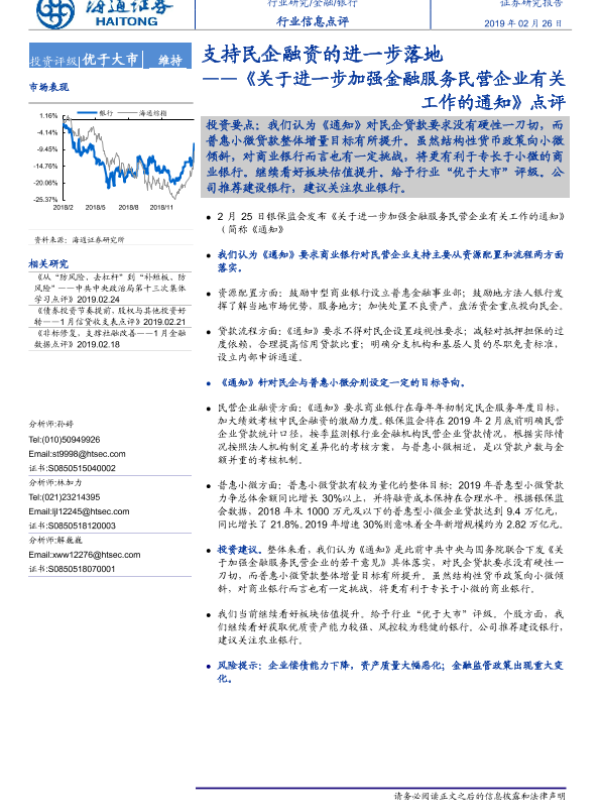 【海通证券】【20190226】关于进一步加强金融服务民营企业有关工作的通知点评:支持民企融资的进一步落地-2页 行业研究