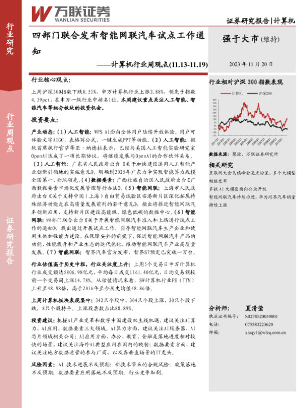 【万联证券】【20231120】四部门联合发布智能网联汽车试点工作通知-10页 行业研究