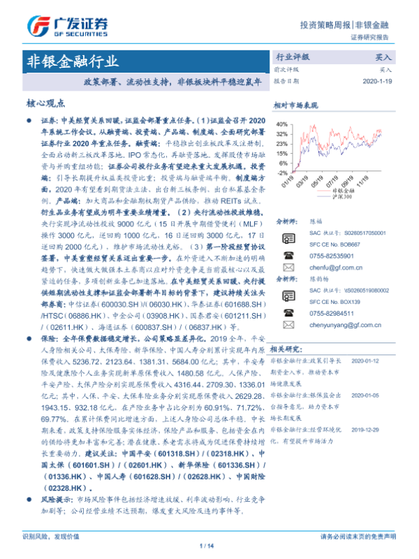 【广发证券】【20200119】非银金融行业投资策略周报:政策部署、流动性支持,非银板块料平稳迎鼠年-14页 行业研究