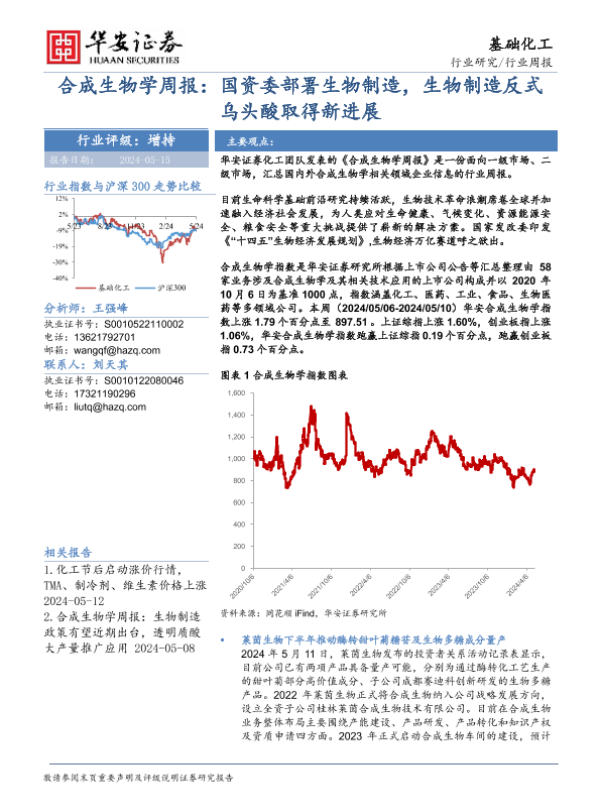 【华安证券】【20240515】合成生物学周报:国资委部署生物制造,生物制造反式乌头酸取得新进展-16页 行业研究
