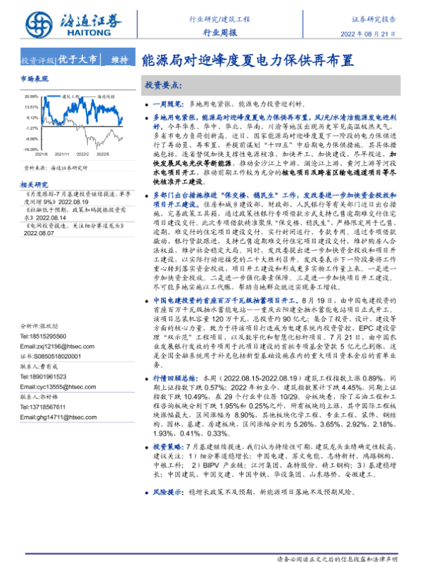 【海通证券】【20220821】建筑工程行业周报:能源局对迎峰度夏电力保供再布置-6页 行业研究