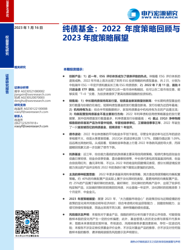 【申万宏源】【20230116】纯债基金:2022年度策略回顾与2023年度策略展望-23页 行业研究