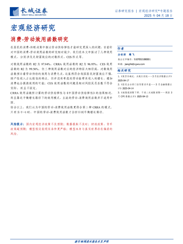 【长城证券】【20250418】宏观经济研究:消费-劳动效用函数研究-10页 证券期货研究报告